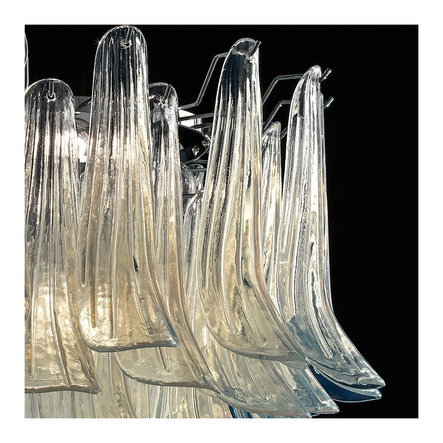 Transparent forms almost slight in this new chandelier in Murano glass. Delicacy and simplicity, this is what gives us this lamp.