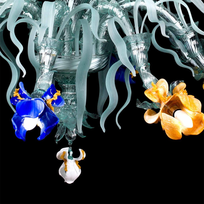 Iris Van Gogh Bouquet. Brilliant and appealing Murano glass chandelier that goes beyond imagination with its luxuriant flower shape style and the free form design.