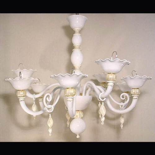 This particular piece of Venetian glass chandelier is a compliment to genuine Venetian Murano glass. It has a very ingenious design that is very eye-catching.