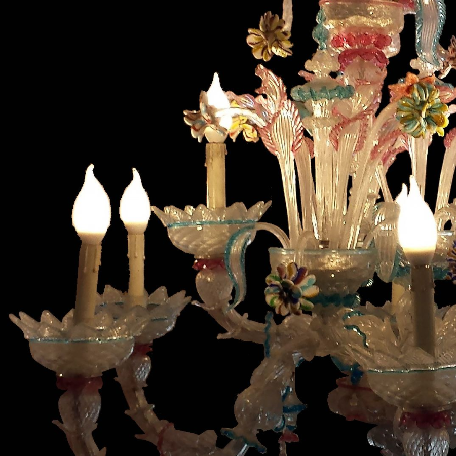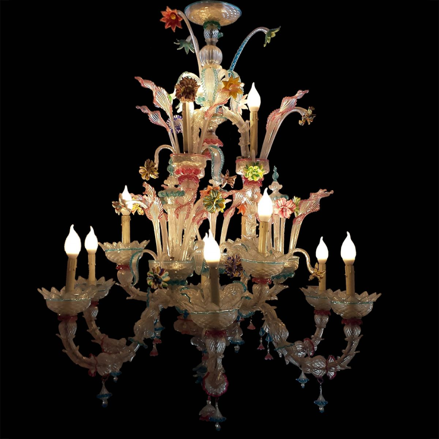 Agra Murano glass chandelier 46 lights, with gold or platinum decorations 24 kt 20 kt fused into the glass. Structure of the brass chandelier. It may be required in the available colors and size you want.
