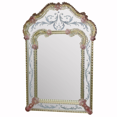 This Venetian glass chandelier is all about details and sophisticated style, from the graceful flowers in the long and curved arms.