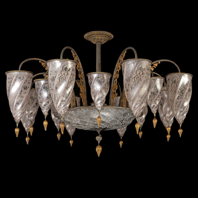 This remarkable Venetian glass chandelier is definitely celebrating the most genuine Venetian rich style with delicate and curved shapes.