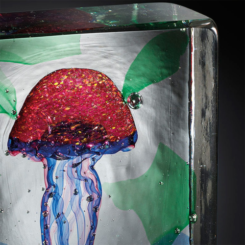 Clear Murano glass prisms with curved edges, structure chromed or gold plated 24K.