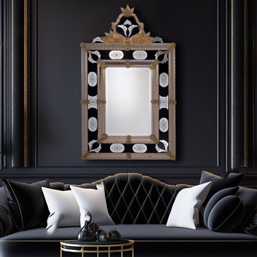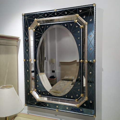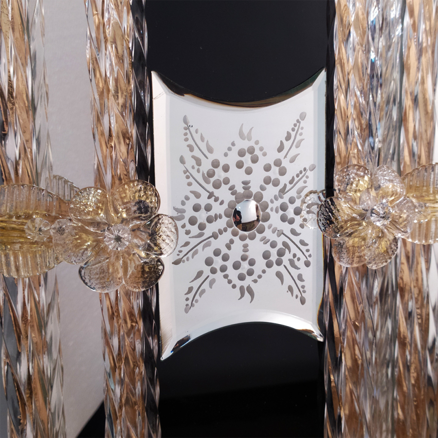 Clear Murano glass prisms with curved edges, structure chromed or gold plated 24K.