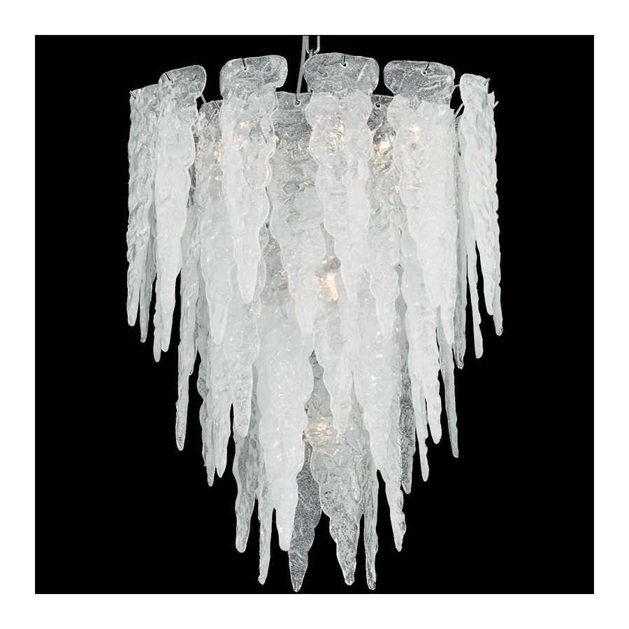 Murano glass chandelier that seems carved in ice. Transparent or opal glass with chrome or gold 24K structure.