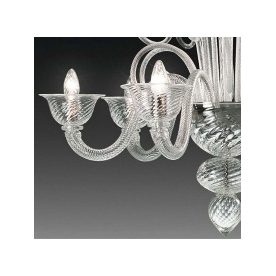 Murano glass chandelier Baicoli, like a tipical Venetian sweet. Glass available transparent or white. Chrome frame.