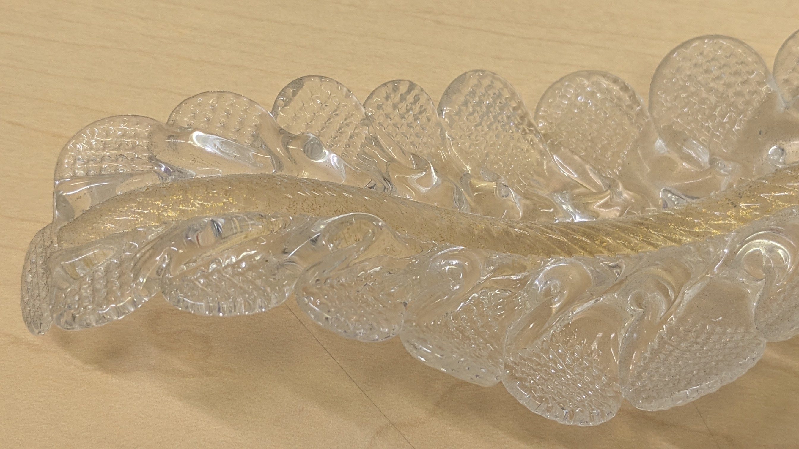 Prismas transparentes de cristal de Murano con bordes redondeados, estructura cromada o enchapada en oro 24 quilates.