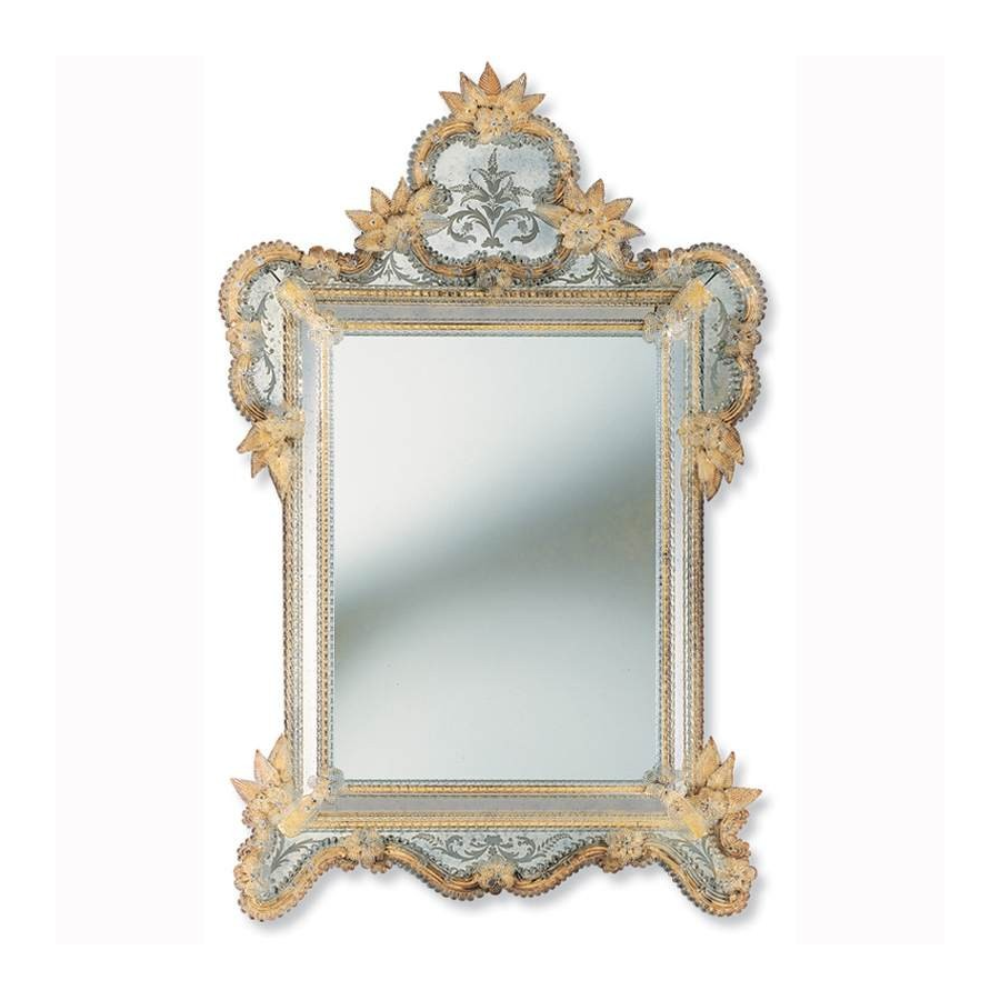 Espejo de Murano de color oro, con bandas antiguas. Embalaje en caja de madera.