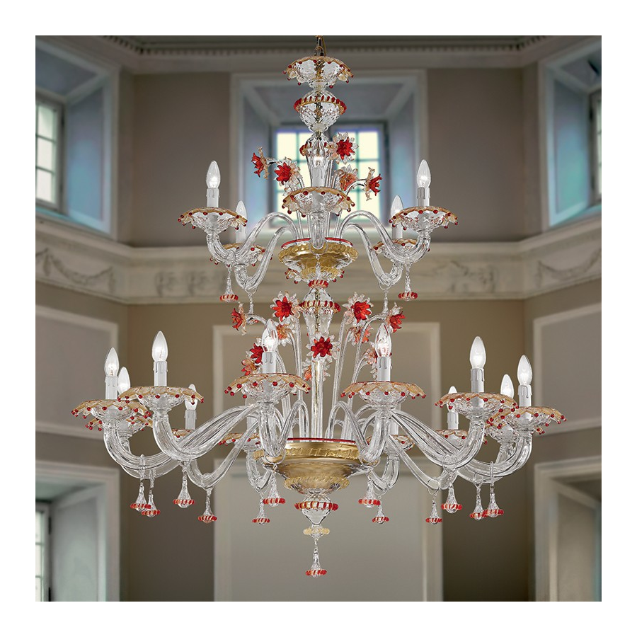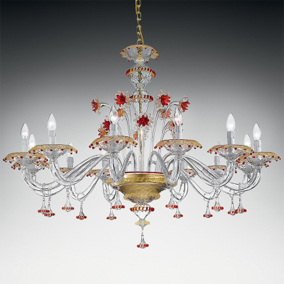 Lámpara de cristal de Murano Secolo totalmente hecha a mano por nuestros Maestros del cristal. Cristal artístico de Murano certificado.