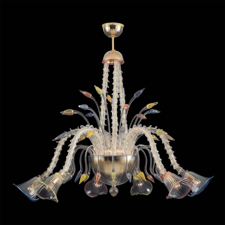 Araña de cristal de Murano 6 luces, belleza simple, transparencia perfecta y colores para dar tono a tu ambiente.