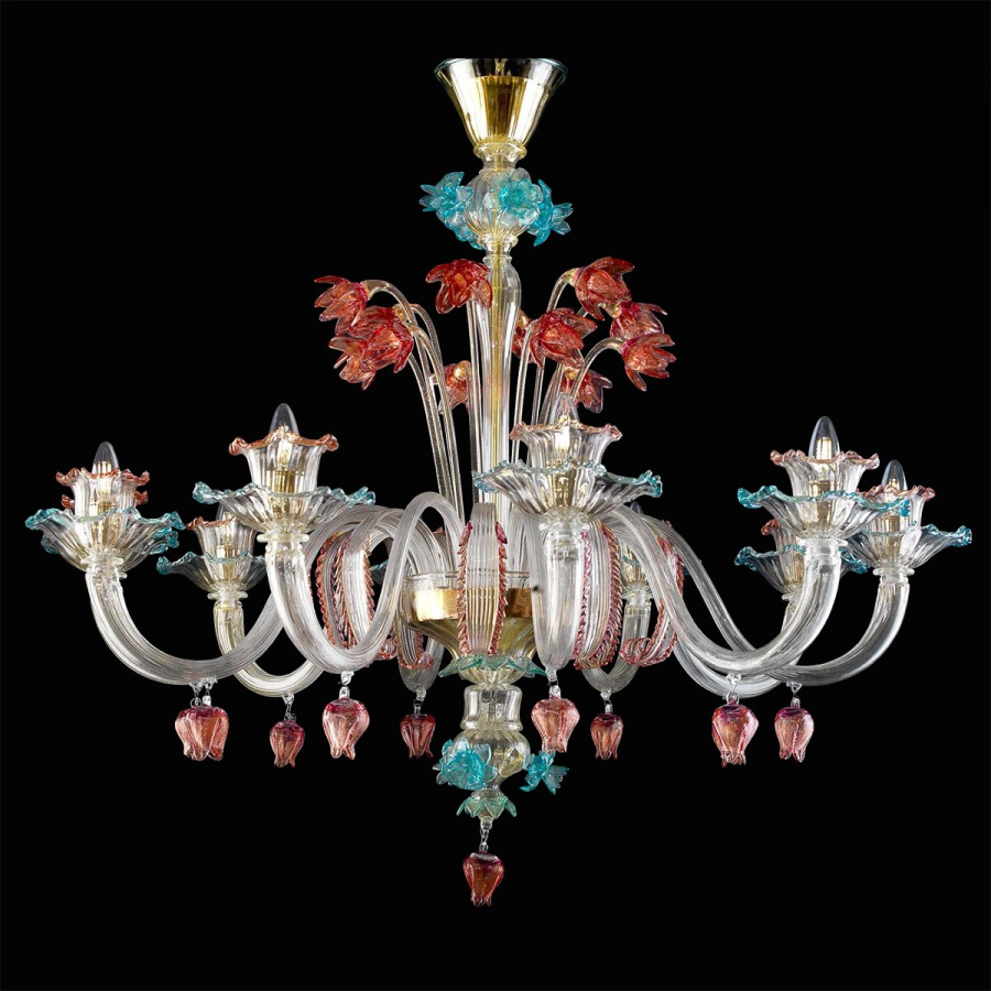 Araña de cristal de Murano 6 luces, belleza simple, transparencia perfecta y colores para dar tono a tu ambiente.