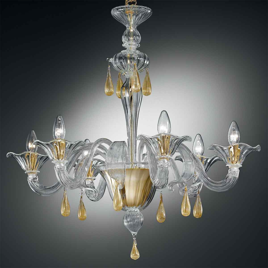 Lámpara de cristal de Murano 6 luces de línea clásica