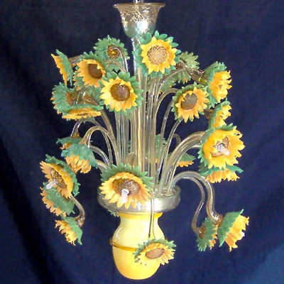 Flores girasoles para tu propia casa con esta extravagante araña veneciana. Lo mejor de todo es la distribución de flores en numerosos niveles.