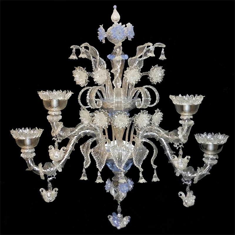 Una magnífica araña de cristal veneciano de muy peculiares colores semi-transparentes. Esta es probablemente una de las arañas más representativas del estilo veneciano.