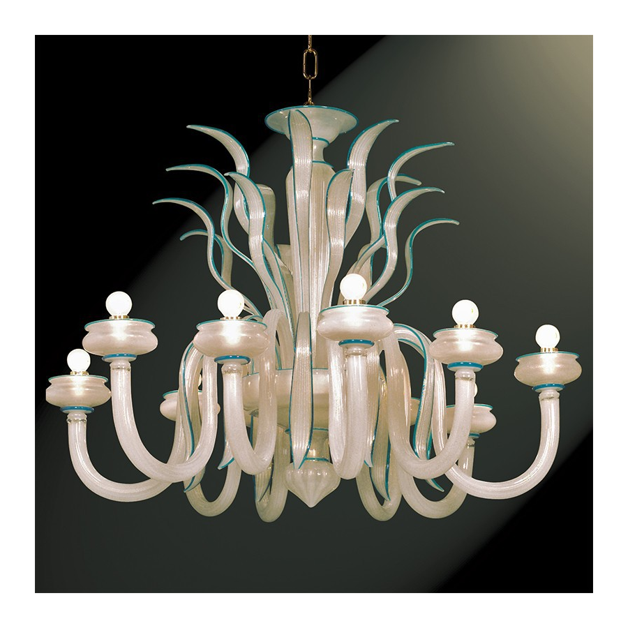 Lámpara de araña Rezzonico Fedra en cristal de Murano, elegante como siempre.