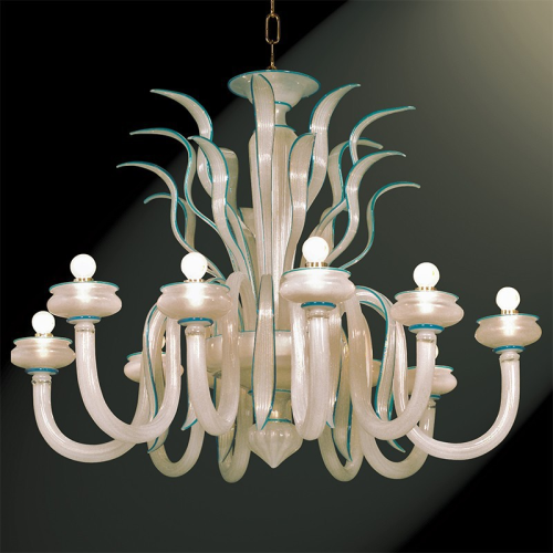 Con diseño alargado y formas redondas curvas muy singulares, esta araña de cristal de Venecia tiene una silueta muy elegante y refinado.