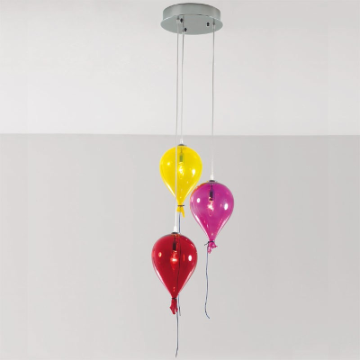 Agradables colgantes en forma de globo en cristal de Murano. Disponible con o sin luz, en los colores: ámbar, rojo, blanco, amatista, magenta, verde, naranja, amarillo, azul claro, azul y Alejandrita.