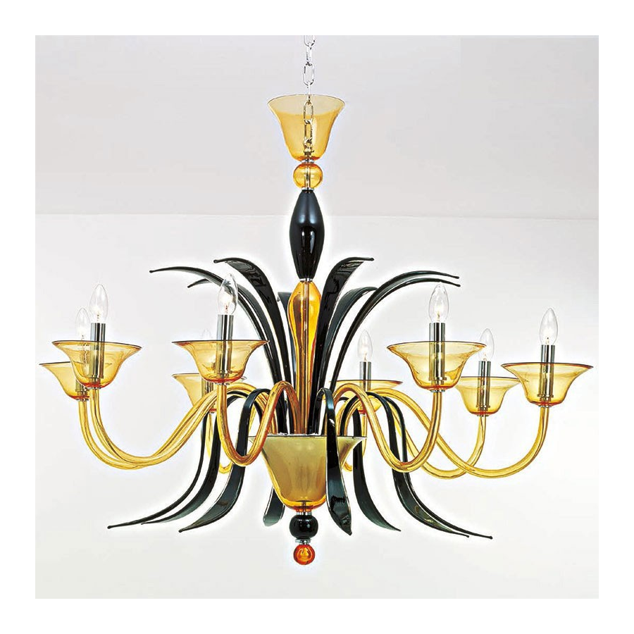 Magnífica lámpara moderna en cristal de Murano. Una hermosa obra de arte moderna de nuestros Maestros de vidrio. 12 luces en cristal de Murano de color ámbar oscuro.