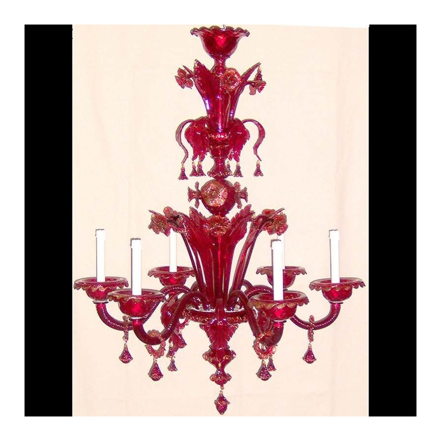 Una lámpara veneciana clásica en estilo antiguo. Todos roja de cristal de Murano con detalles en oro de 24 quilates.