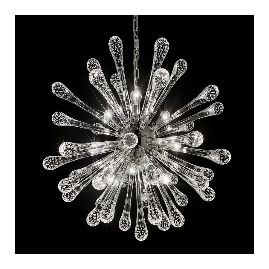Lámparas de araña con cilindros de cristal de Murano transparente estilo años 70 para añadir una luz deslumbrante a tu estancia.