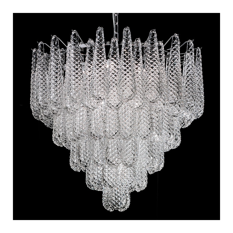 Lámpara de cristal Murano que parece esculpida en el hielo. Vidrio transparente u ópalo con estructura de cromo u oro de 24 quilates.