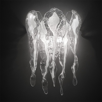Lámpara de cristal Murano que parece esculpida en el hielo. Vidrio transparente u ópalo con estructura de cromo u oro de 24 quilates.