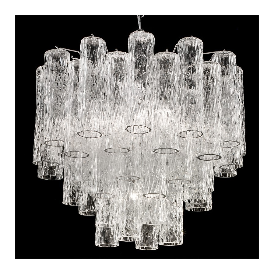 Lámparas de araña con cilindros de cristal de Murano transparente estilo años 70 para añadir una luz deslumbrante a tu estancia.