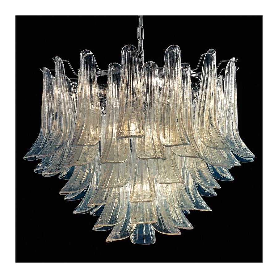 Lámpara de cristal de Murano con hojas ligeras y transparentes. Vidrio ópalo con estructura cromo o dorada 24K.