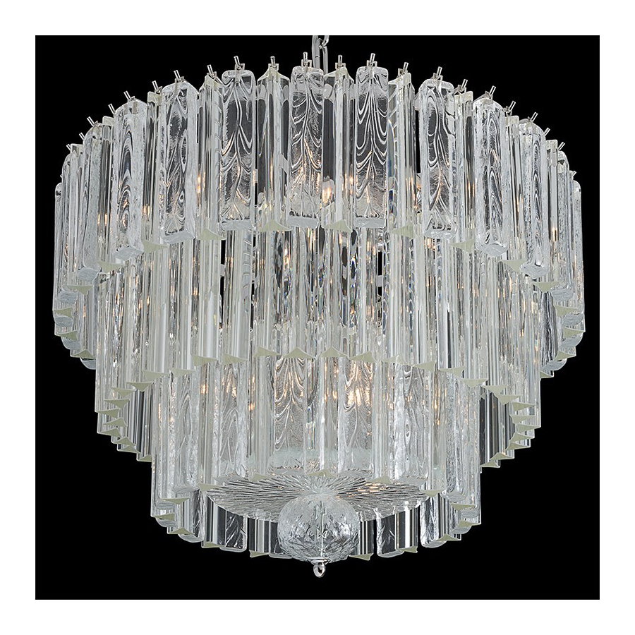 Lámpara de cristal de Murano con platos de vidrio pulegoso, estructura cromada o bronce.