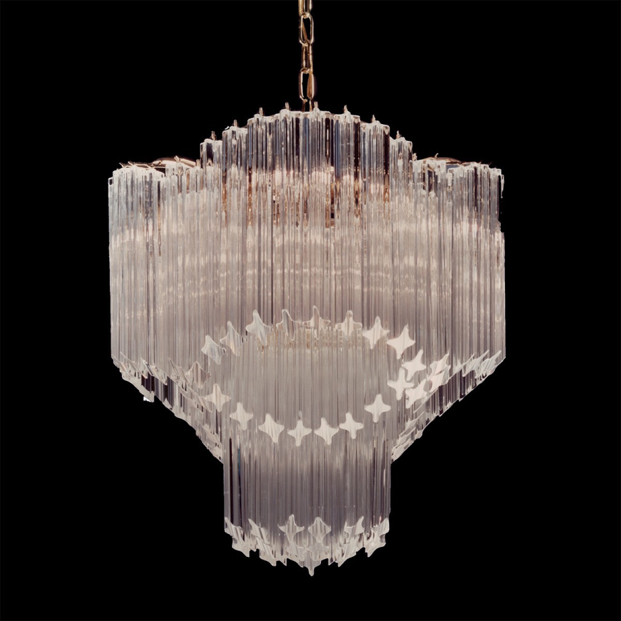 Lámparas de araña con cilindros de cristal de Murano transparente estilo años 70 para añadir una luz deslumbrante a tu estancia.