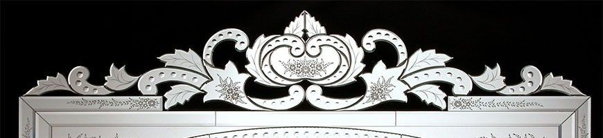 Miroir vénitien luxe en verre de Murano moulu et gravé. Couleurs et tailles disponibles sur demande.