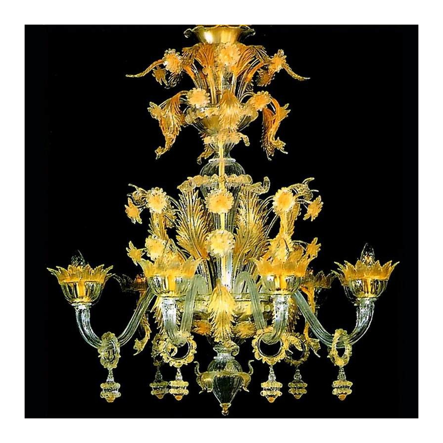 Segesta est un lustre Rezzonico en verre de Murano . Délicatesse, or et transparence des couleurs sont un rêve de l'ancienne splendeur de Murano