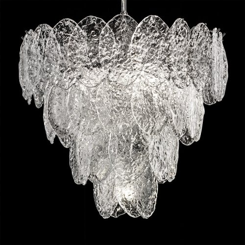 C'est un des lustre classique Rezzonico en verre clair. Les lumières disposées en plusieurs niveaux permettent d'éclairer espaces avec des hauteurs importantes.