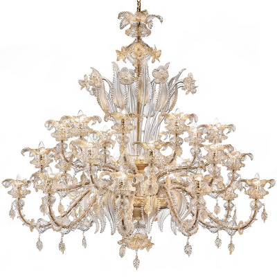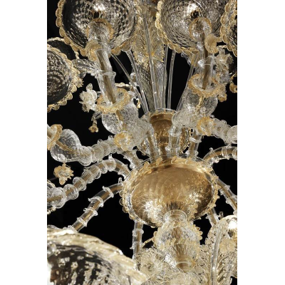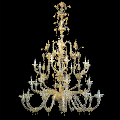 Très important lustre Rezzonico en verre de Murano avec 111 lumières. Verre cristal/or. Lustre sur projet, variantes possibles sur demande.