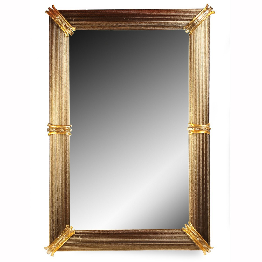 Miroir en verre de Murano avec des bandes vieilli, cristal de couleur or.