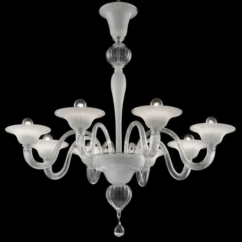 Ce remarquable lustre en verre vénitien est définie par l'apparition blanc cristalline comme la neige dans un corps en verre unique.