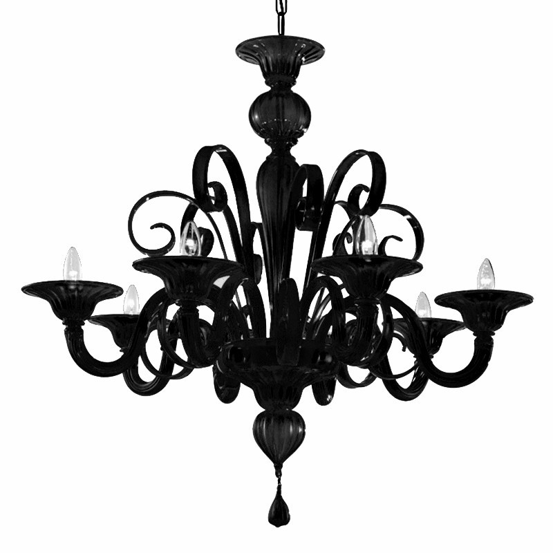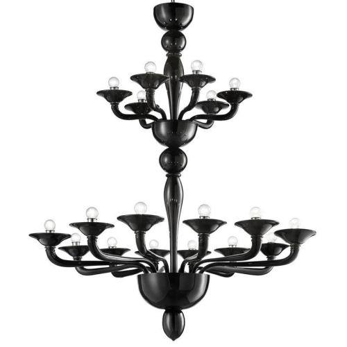 Très élégant et raffiné lustre en verre de Murano. Transparent, Noir ou Blanc. Autres couleurs sur demande.