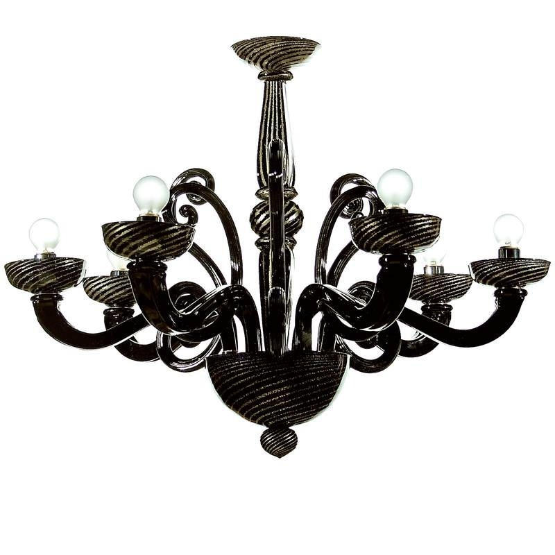 Un extraordinaire lustre en verre de Murano noir et doré, faite avec un style exquis. La conception principale est sophistiquée, entièrement à la main, décoré avec penderie clair.
