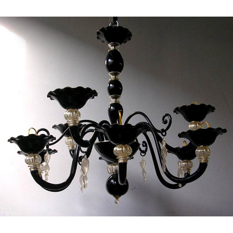 Un extraordinaire lustre en verre de Murano noir et doré, faite avec un style exquis. La conception principale est sophistiquée, entièrement à la main, décoré avec penderie clair.
