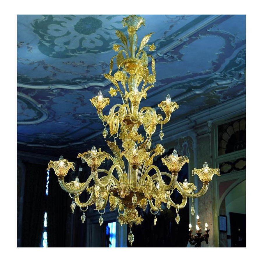 Probablement le lustre en verre vénitien plus élégant et impressionnant, faite avec de l'or 24k, soigneusement élaboré par des artistes hautement qualifiés.