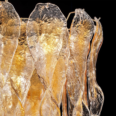 Comme un léger vol du printemps à la lumière du coucher du soleil, lustres en verre de Murano.