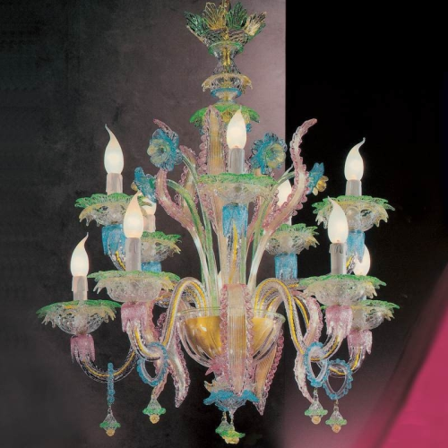 Lampadario in vetro di Murano stile classico dai colori trasparenti e delicati