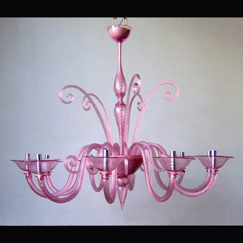 Un lampadario in vetro di Murano dalle forme classiche e semplici.