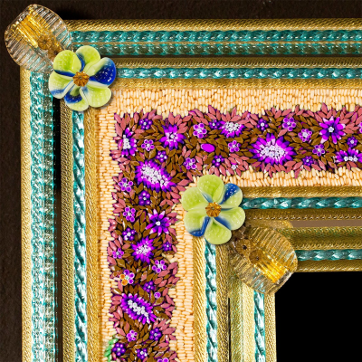 Specchio veneziano con fiori in Pasta e a mosaico.