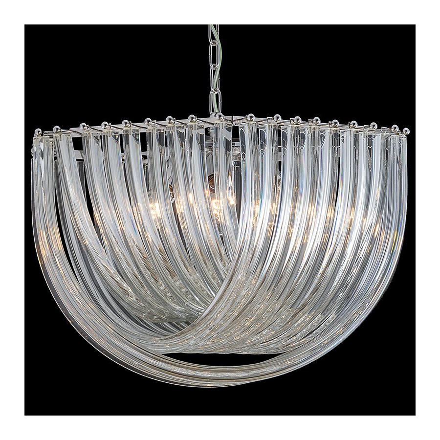 Lampadario dalle sinuose forme, in vetro di Murano.